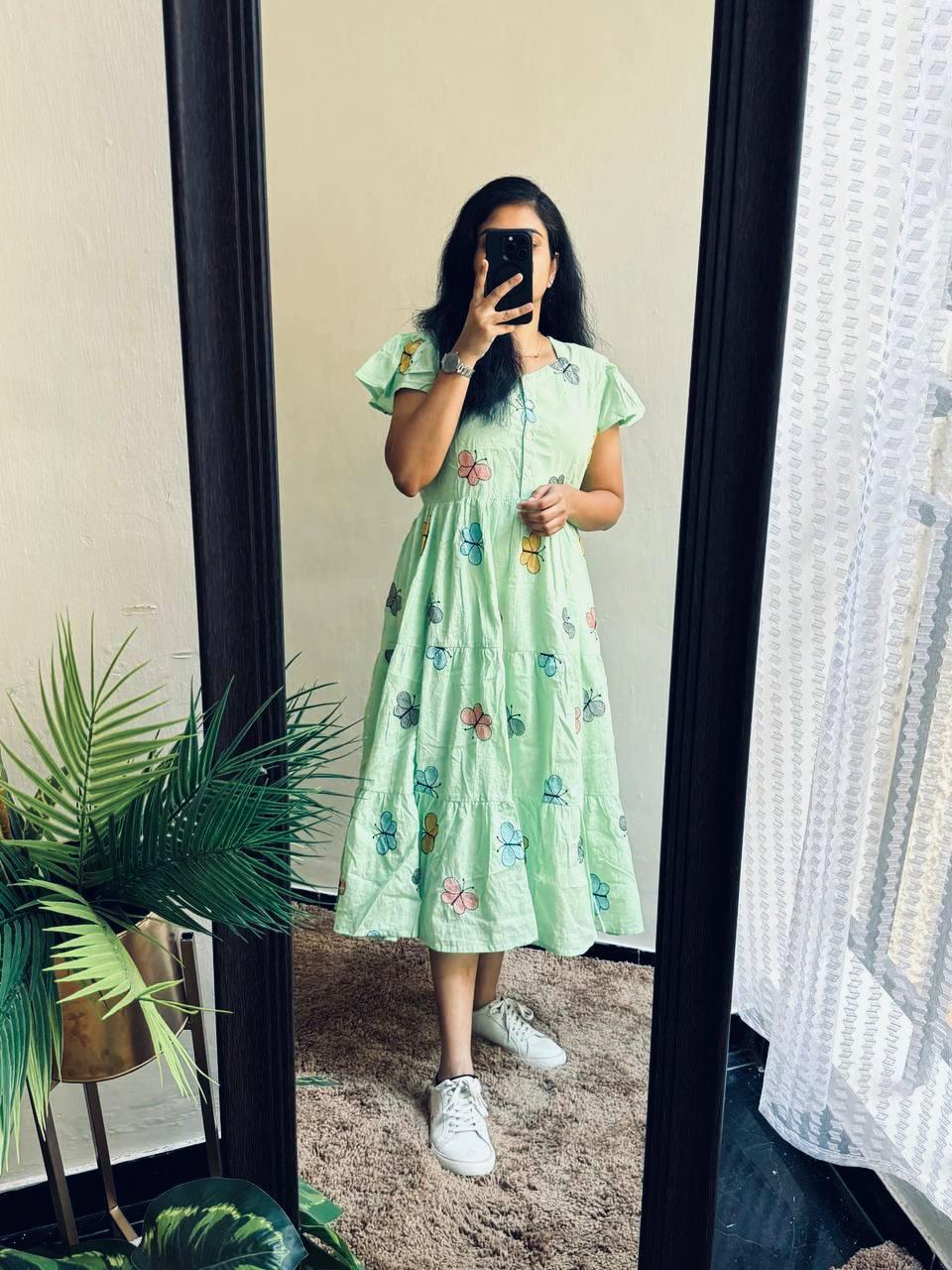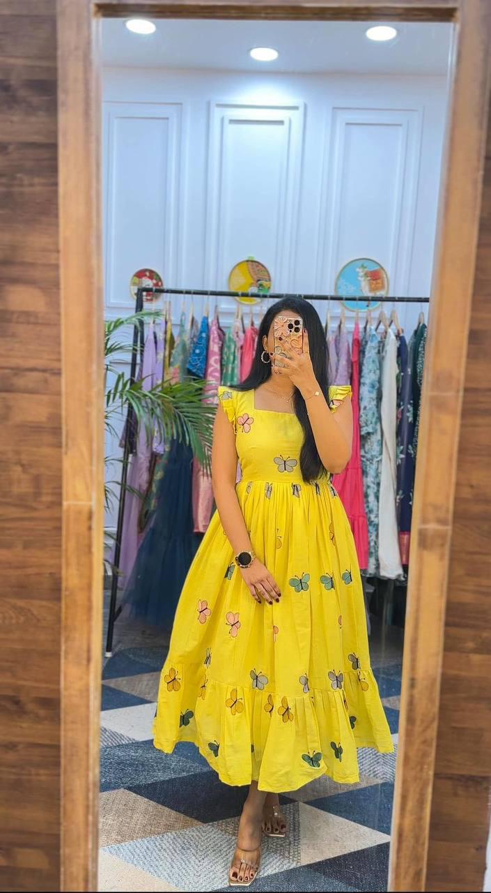 Celebrate this joy of dressing in the best way🌸 here presenting you a beautiful Summer maxi for the upcoming season with beautiful butterfly All Over 😍😍