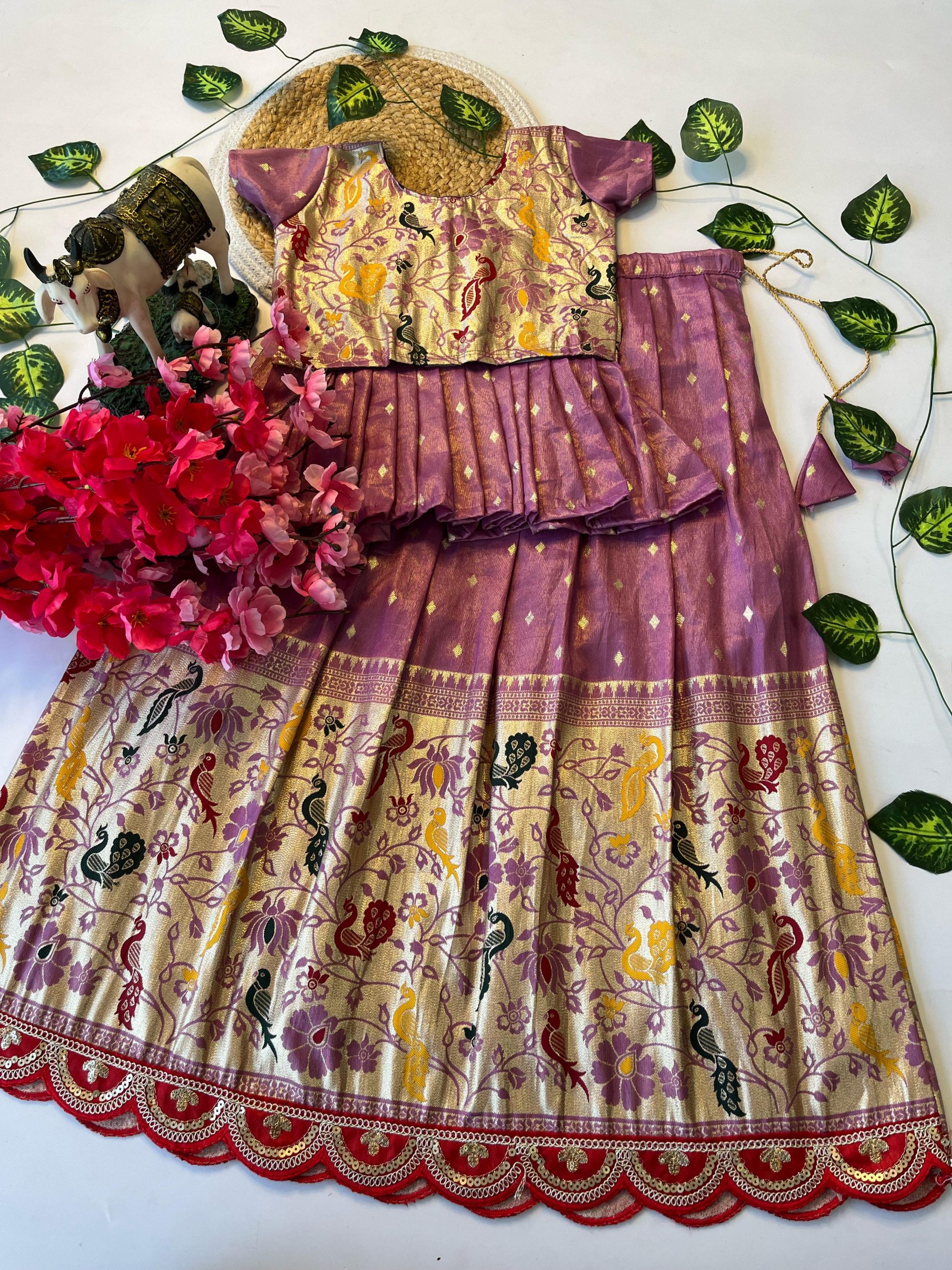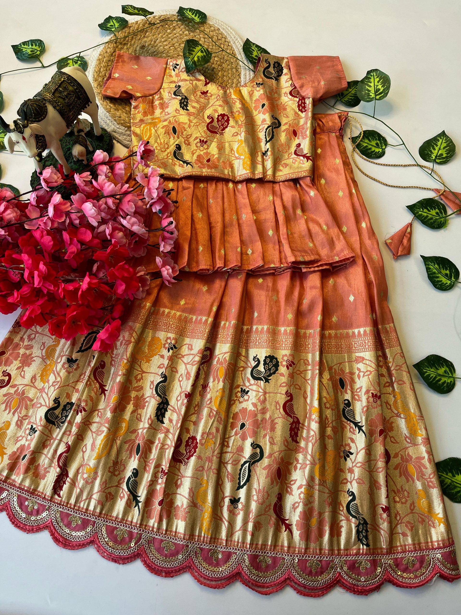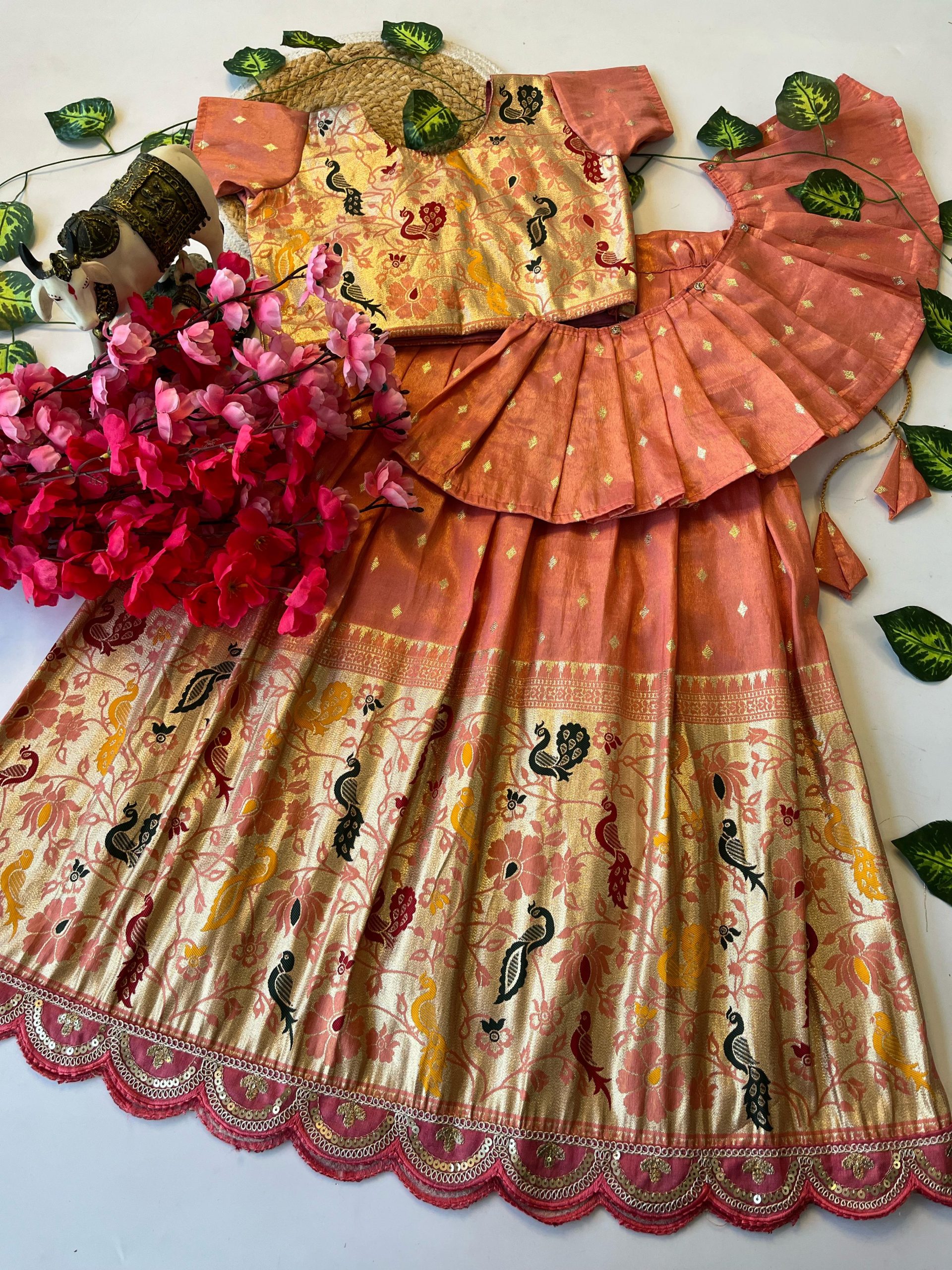 LEHENGA :- PAITHANI TISSUE FABRIC LEHENGHA WITH SCALLOPED BORDER LACE