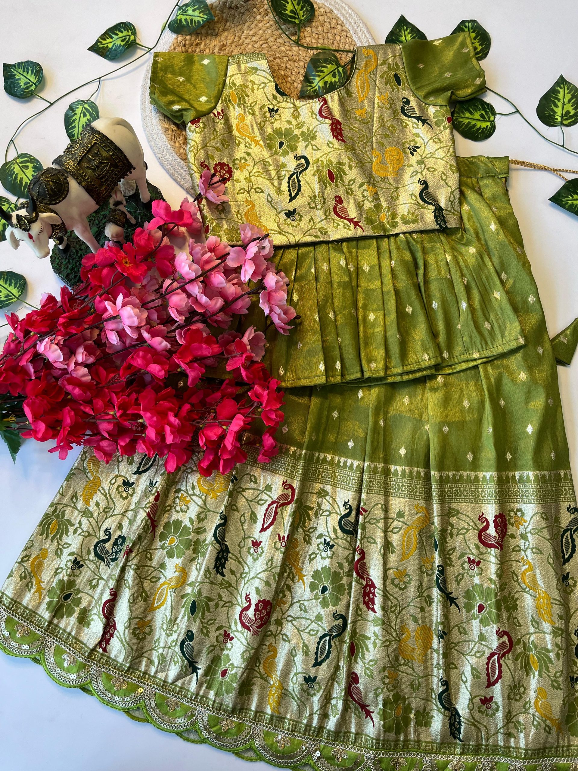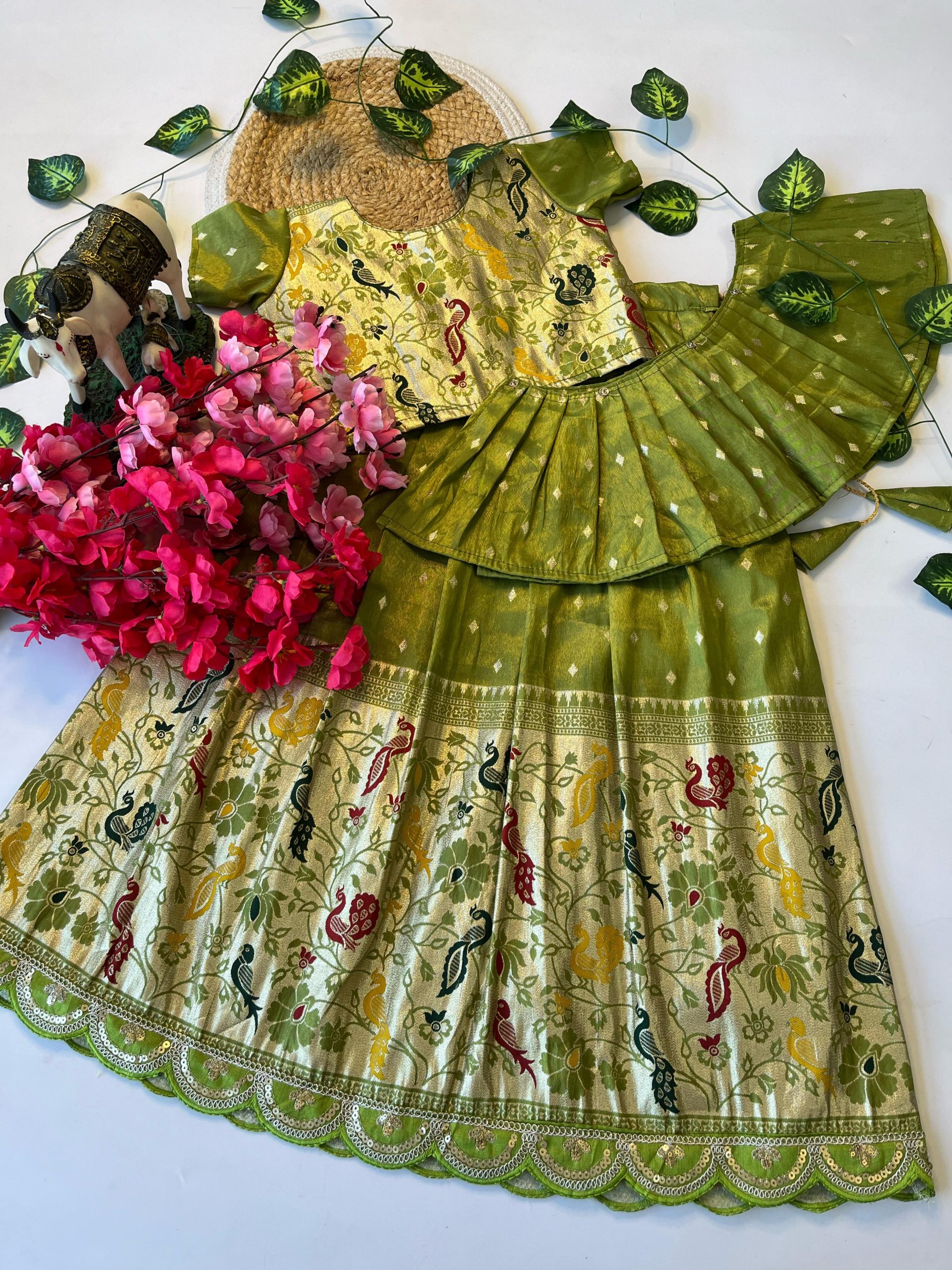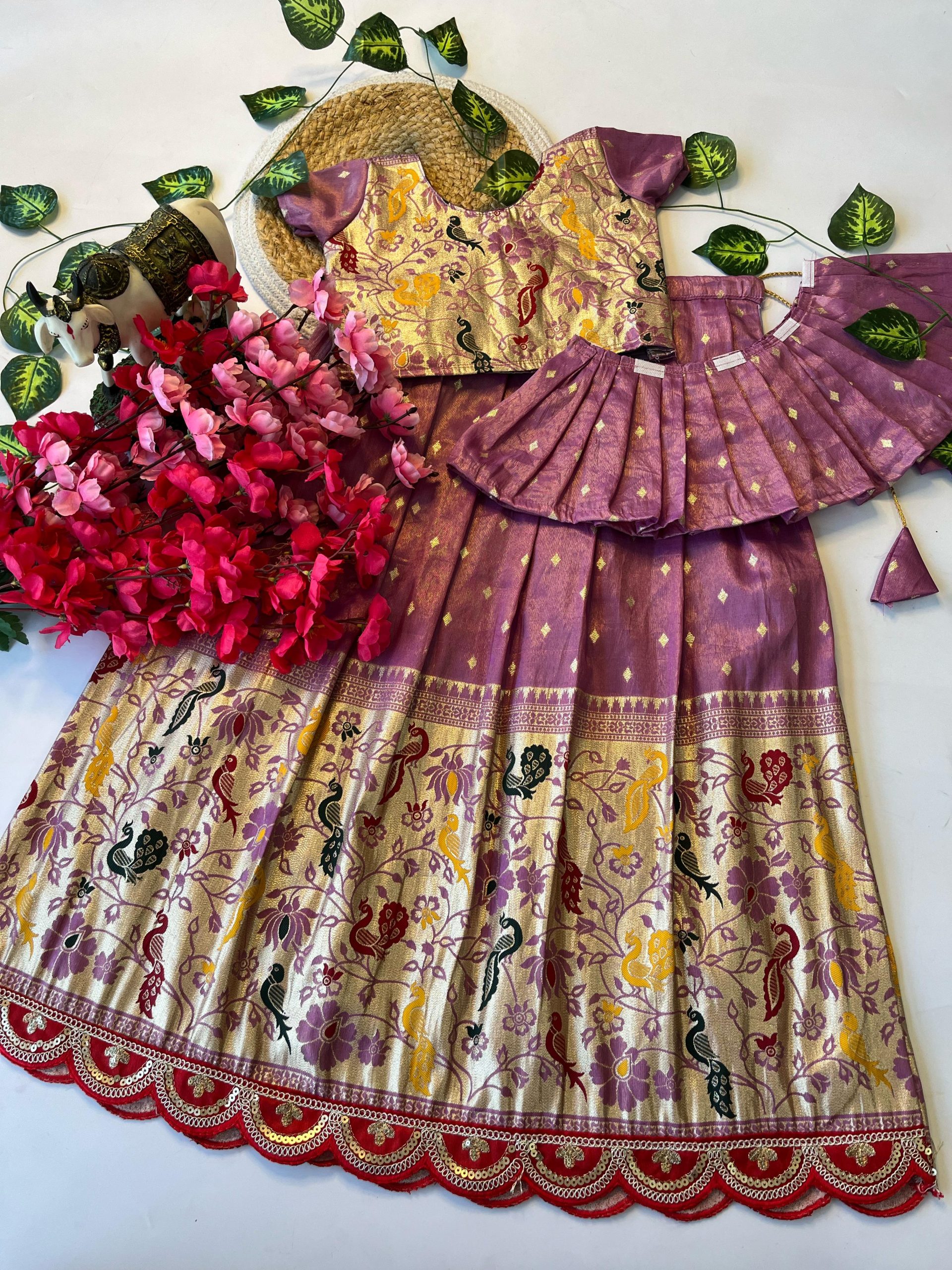 LEHENGA :- PAITHANI TISSUE FABRIC LEHENGHA WITH SCALLOPED BORDER LACE