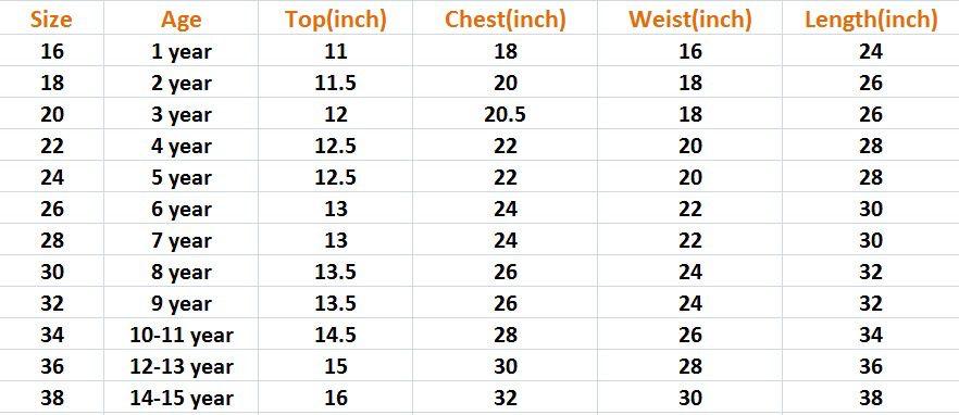 | Kids | 16, 18, 20, 22, 24, 26, 28, 30, 32, 34, 36, 38 |