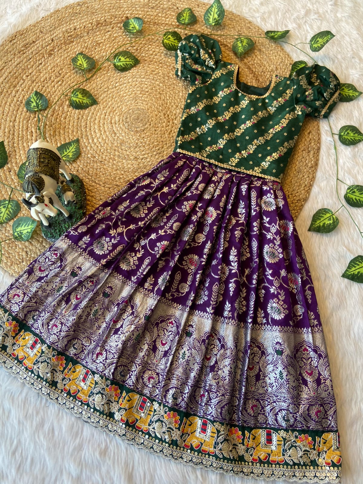 >Gown :- Nylon silk fabric with embroidery lace on flair