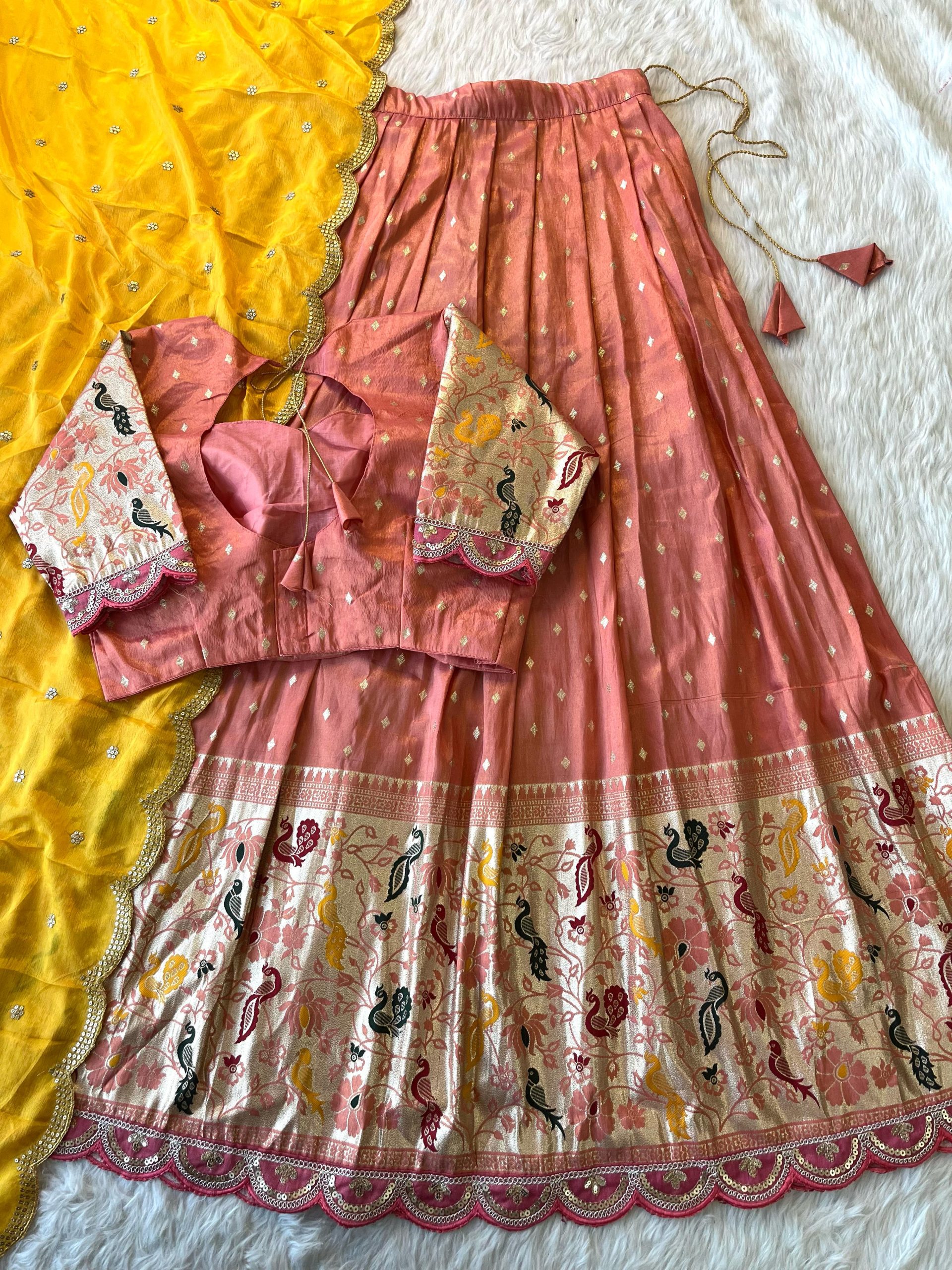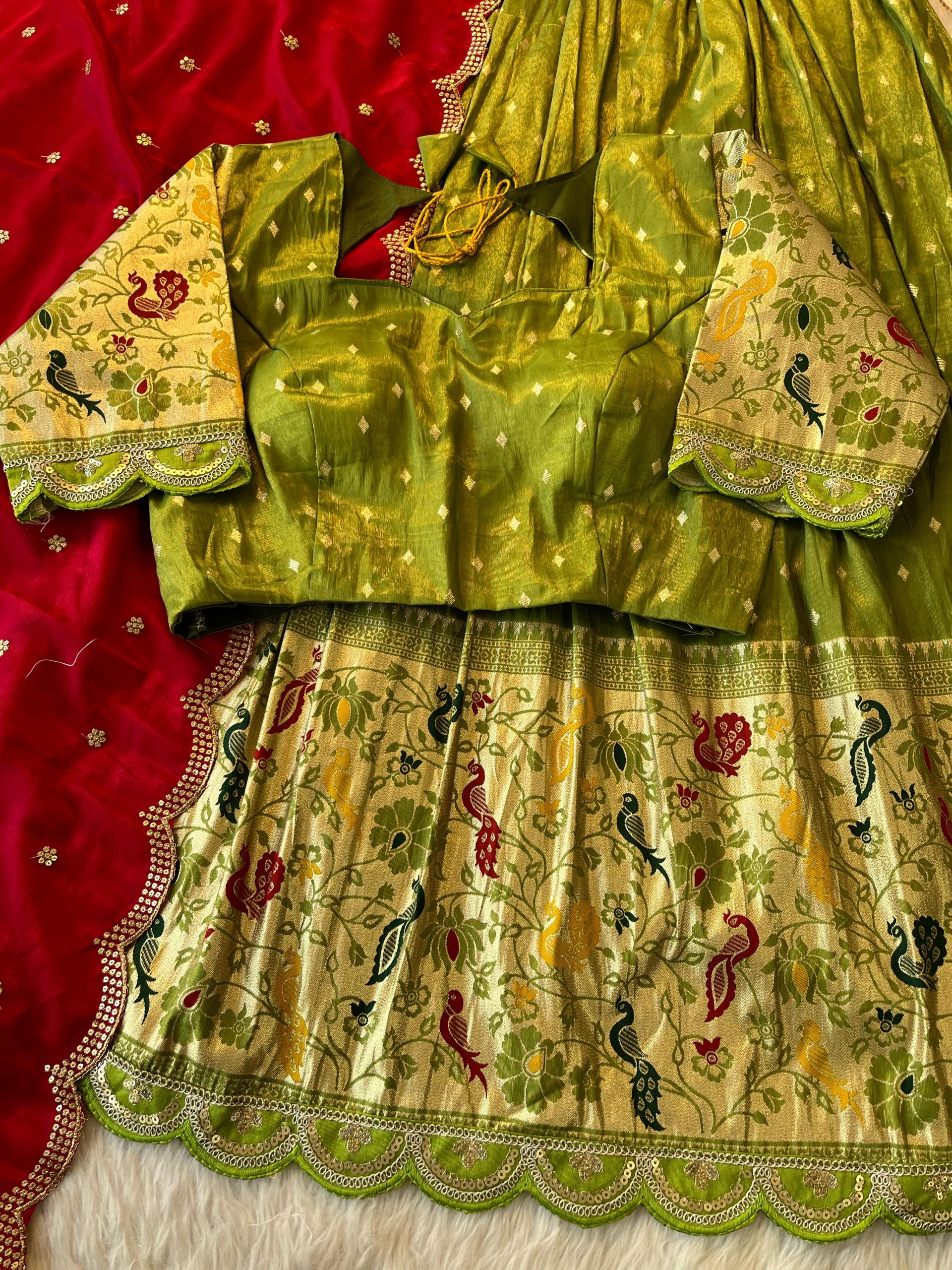 Lehanga V0008 – Paithani tissue silk with embroidery cut work