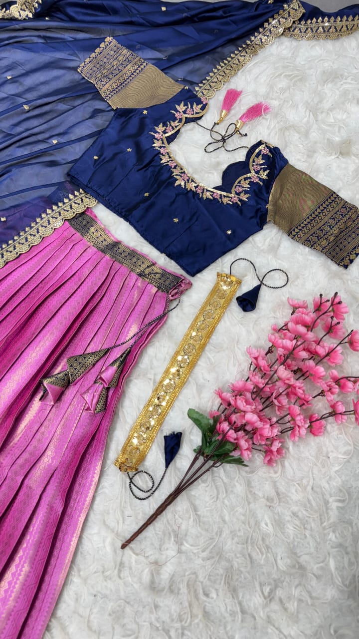 *Lehanga Details*:- Full stiched Kanjivaram silk With big jequard Border attached with Canvas patta zip and Latkan