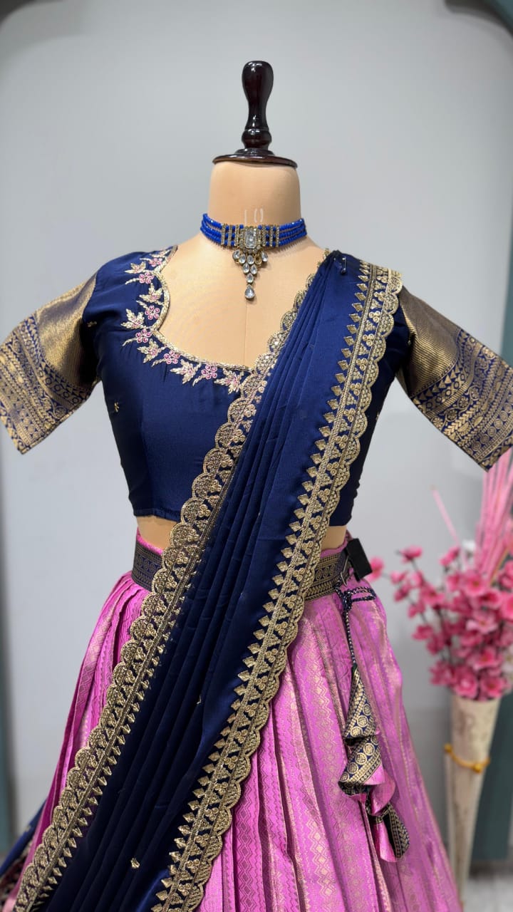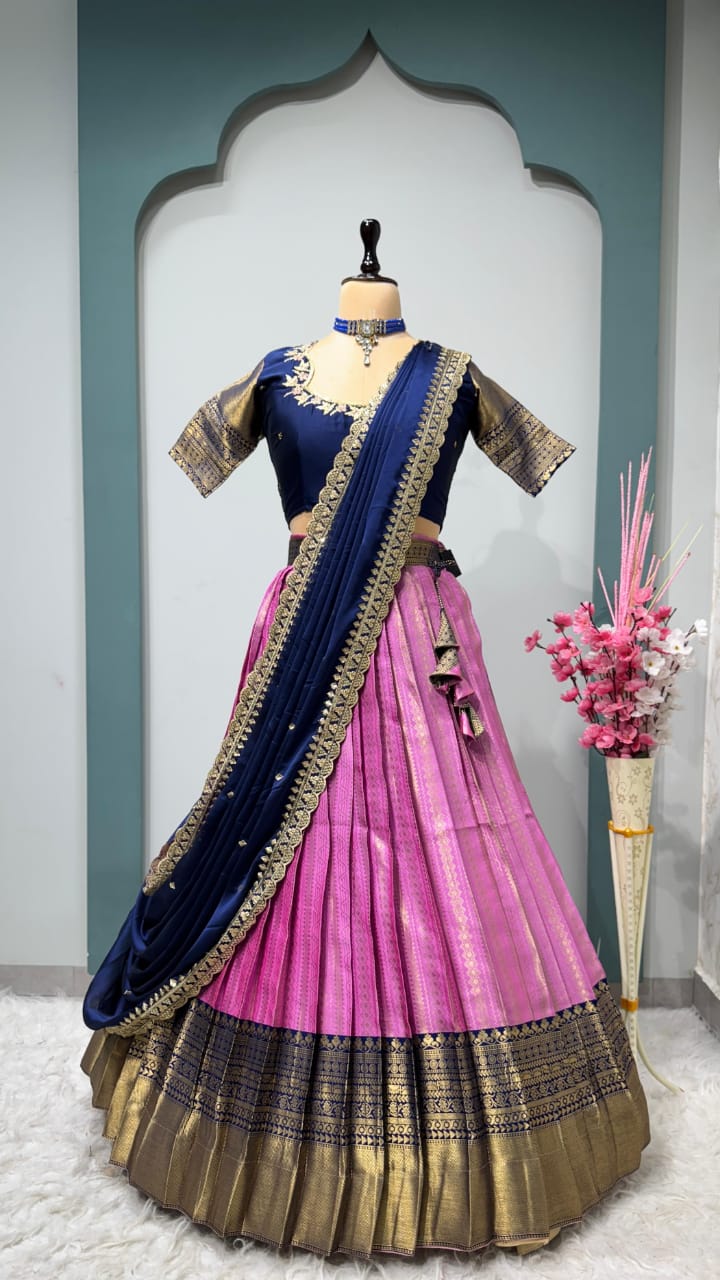 LehangaV0005- pure kanjivaram silk lehanga set