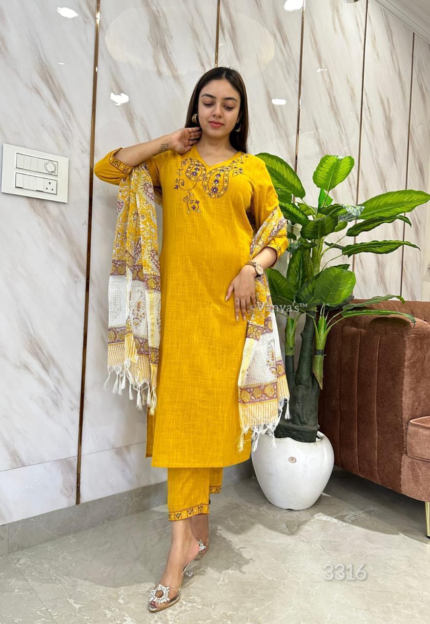 Handloom cotton slub cotton fabric with *manual dual thread embroidery work*