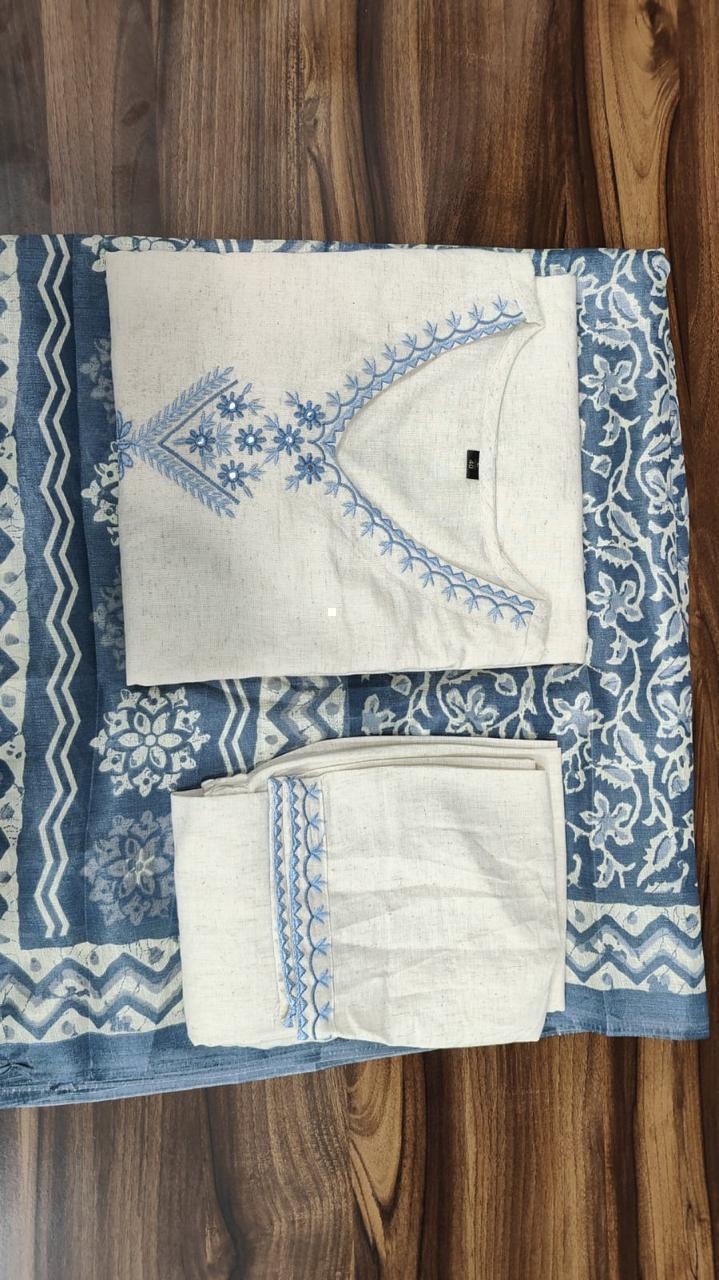 Pure HANDLOOM Cotton Flex weaving based fabric all over embroidery. Paired with straight cotton flex pant. Embroidery on hems and beautiful shade Cotton silk duppata..👗👗