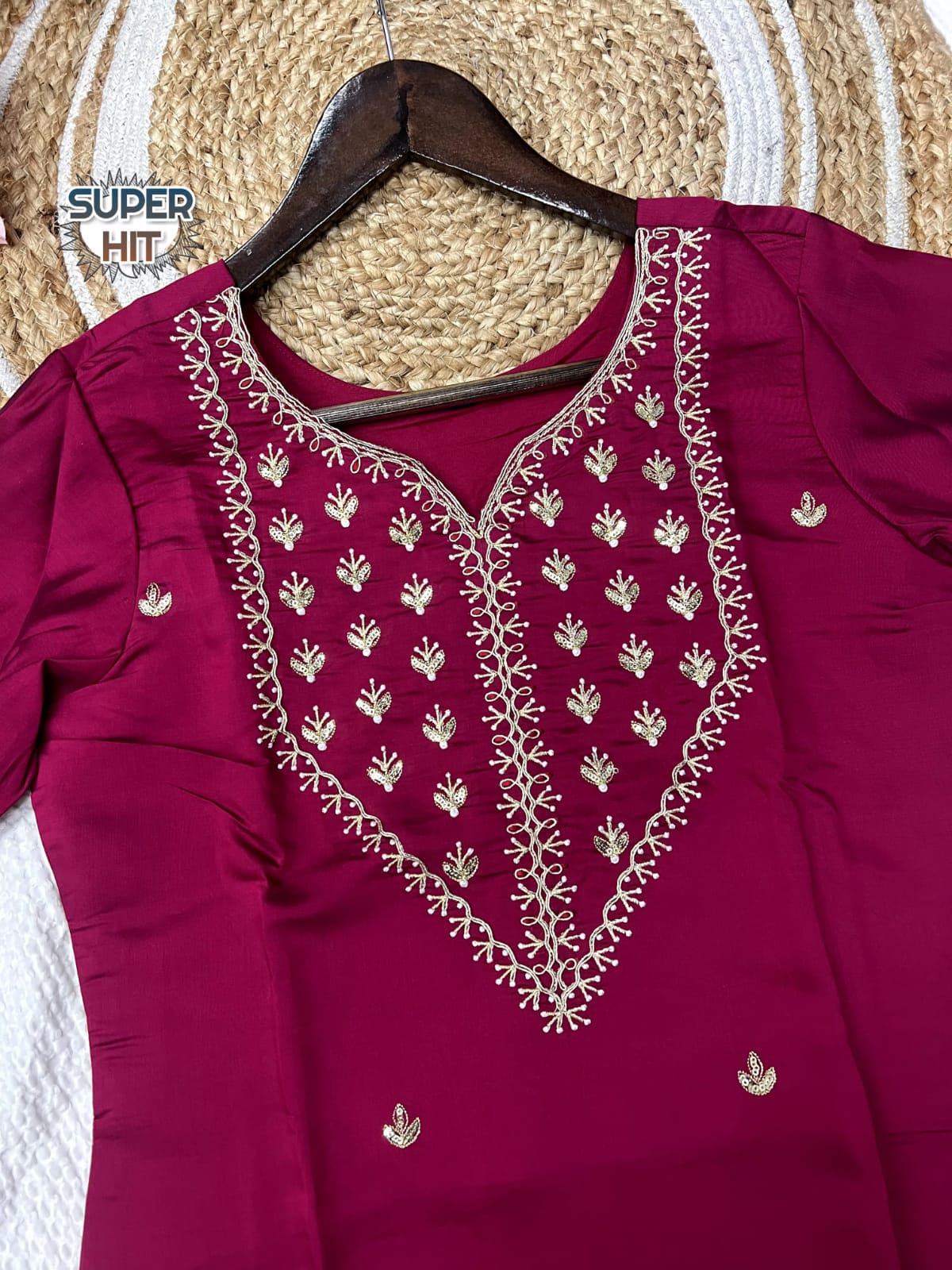 *🍁🍁🍁Featuring beautiful Heavy Suit Set which is beautifully decorated with intricate hand embroidery, Zari weaving . It is paired with matching pants and Lace Dupatta.*