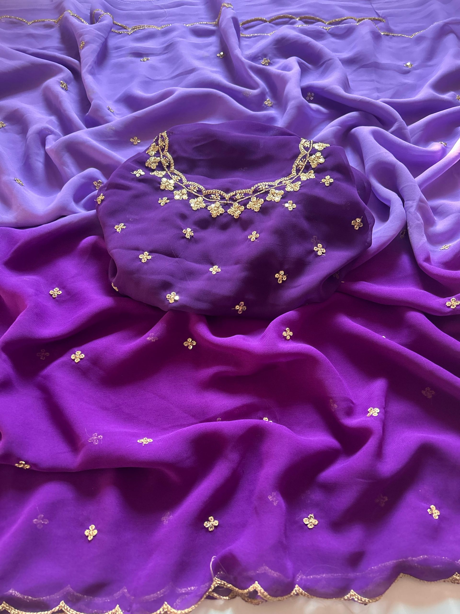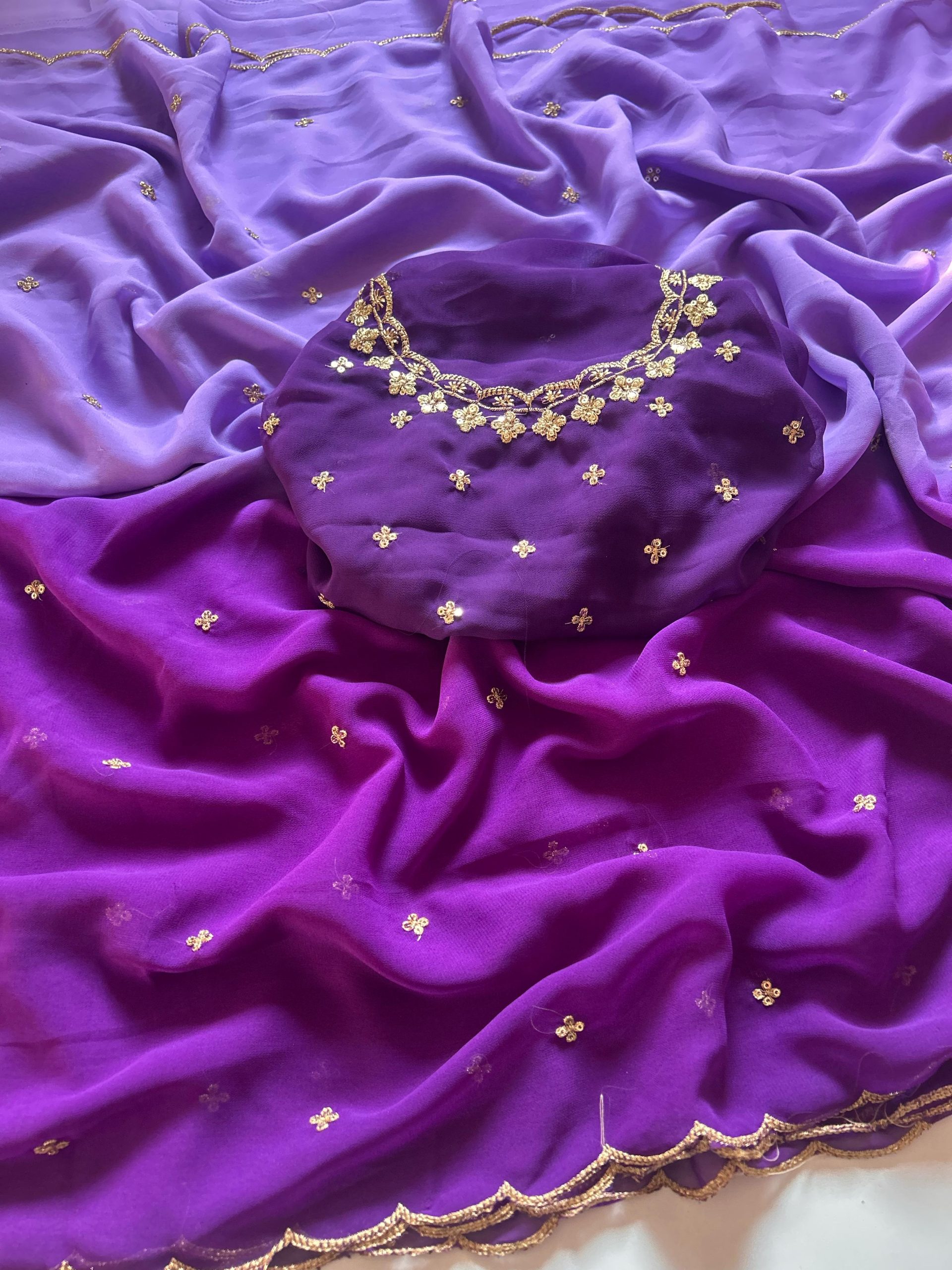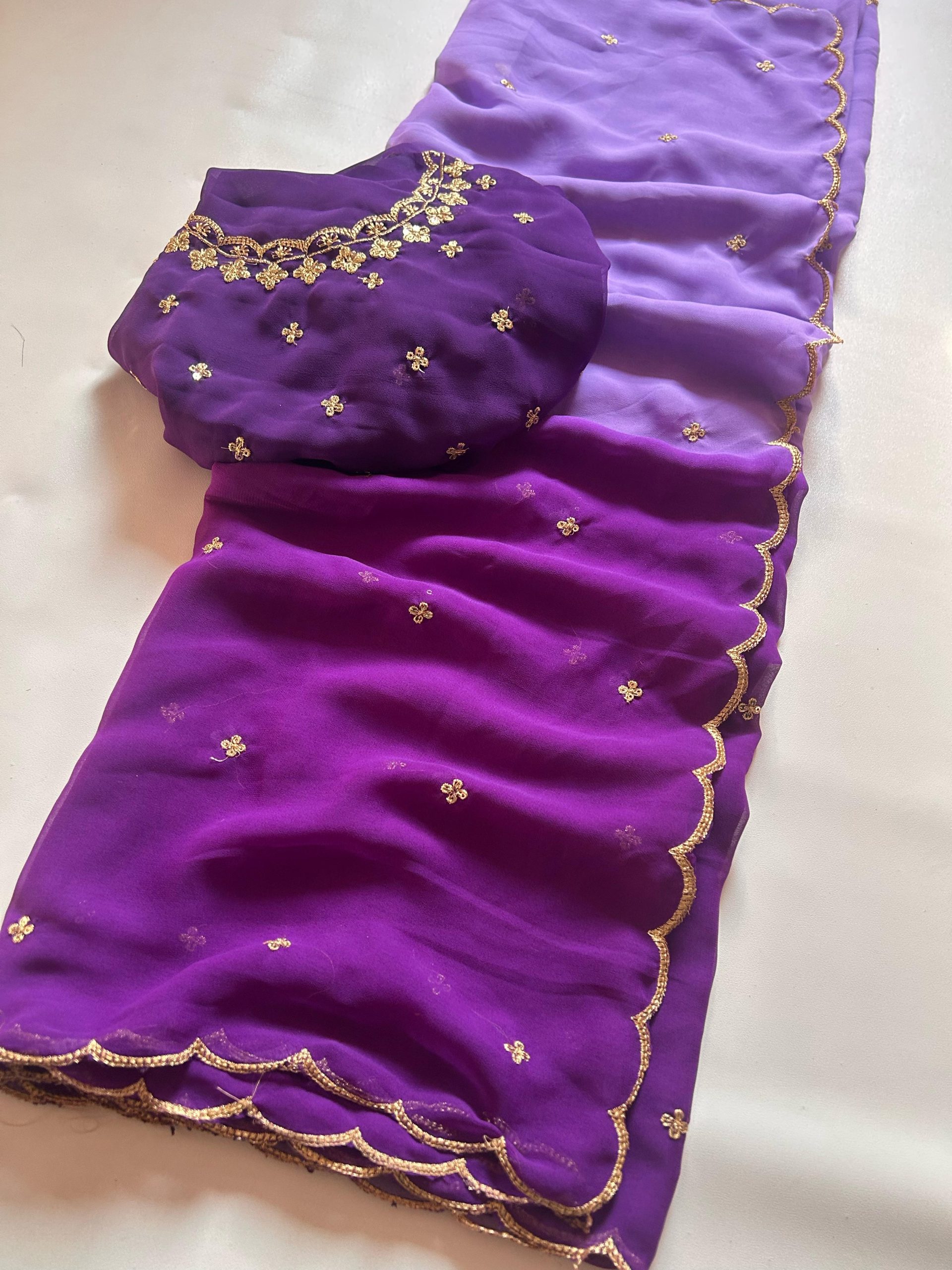 *Soft chiffon Silk* Fabric Along With Padding Pattern & C – Pallu Sequence & Work In Saree* Border Along With Cutwork & Designer Worked Blouse